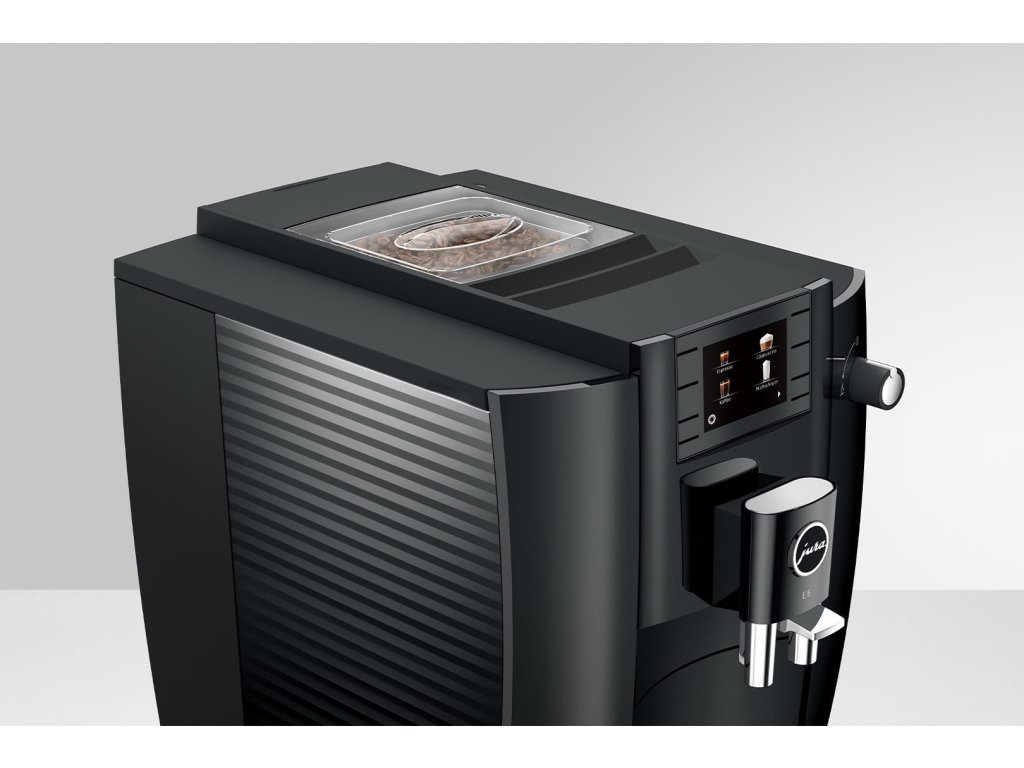 Přehledný barevný 2,8" displej, šest ideálně umístěných tlačítek a koncepce intuitivního ovládání umožňují komfortní ovládání kávovaru E6 pro jednoduchou přípravu kávy, jakož i nastavení individuálních preferencí nebo samovysvětlující funkce čištění. Kávovar E6 je samozřejmě také kompatibilní s J.O.E.®: Připravujte kávové speciality prostřednictvím smartphonu, nastavujte a ukládejte své osobní preference nebo snadno odesílejte více objednávek kávy svých hostů přímo do automatického kávovaru pro kávové speciality.