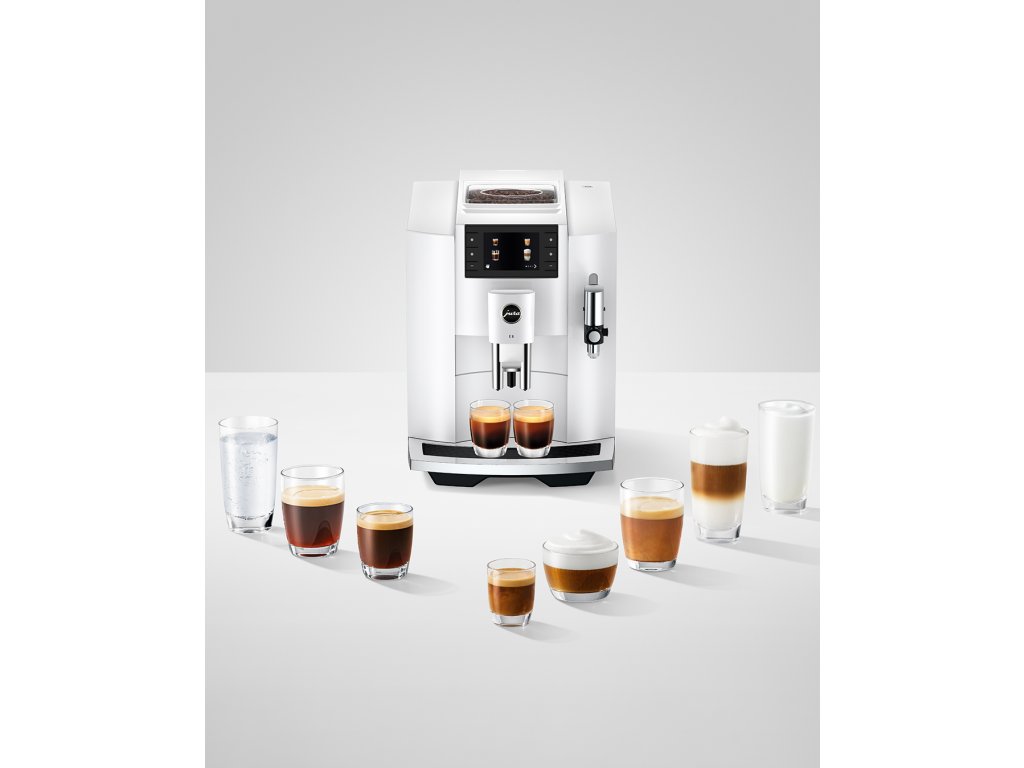 Široký repertoár kávových klasik a specialit ovládá E8 na výbornou. 17 kávových variant je na výběr jediným stisknutím tlačítka. To zahrnuje kávu bez mléka i s mléčnou pěnou. Všechny produkty lze samozřejmě přizpůsobit individuální chuti a požadované velikosti šálku. Maximální požitek zajišťuje nejmodernější technologie, která z každé kávové směsi a pražení za optimálních podmínek extrakce vykouzlí maximum vůně a chuti.