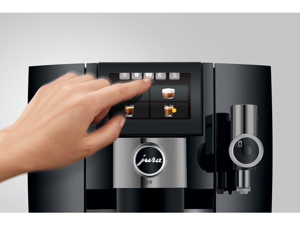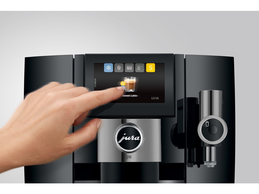 Model J10 nabízí až 42 kávových specialit – od espressa a flat white až po moderní „Sweet“ nápoje jako Sweet Latte či Sweet Cappuccino. Funkce Sweet Foam umožňuje ochutit mléčnou pěnu přímo během přípravy nápoje, například vanilkovým nebo karamelovým sirupem. Ovládání je maximálně komfortní díky 4,3" barevnému dotykovému displeji s přehledným menu a animovanými ikonami.