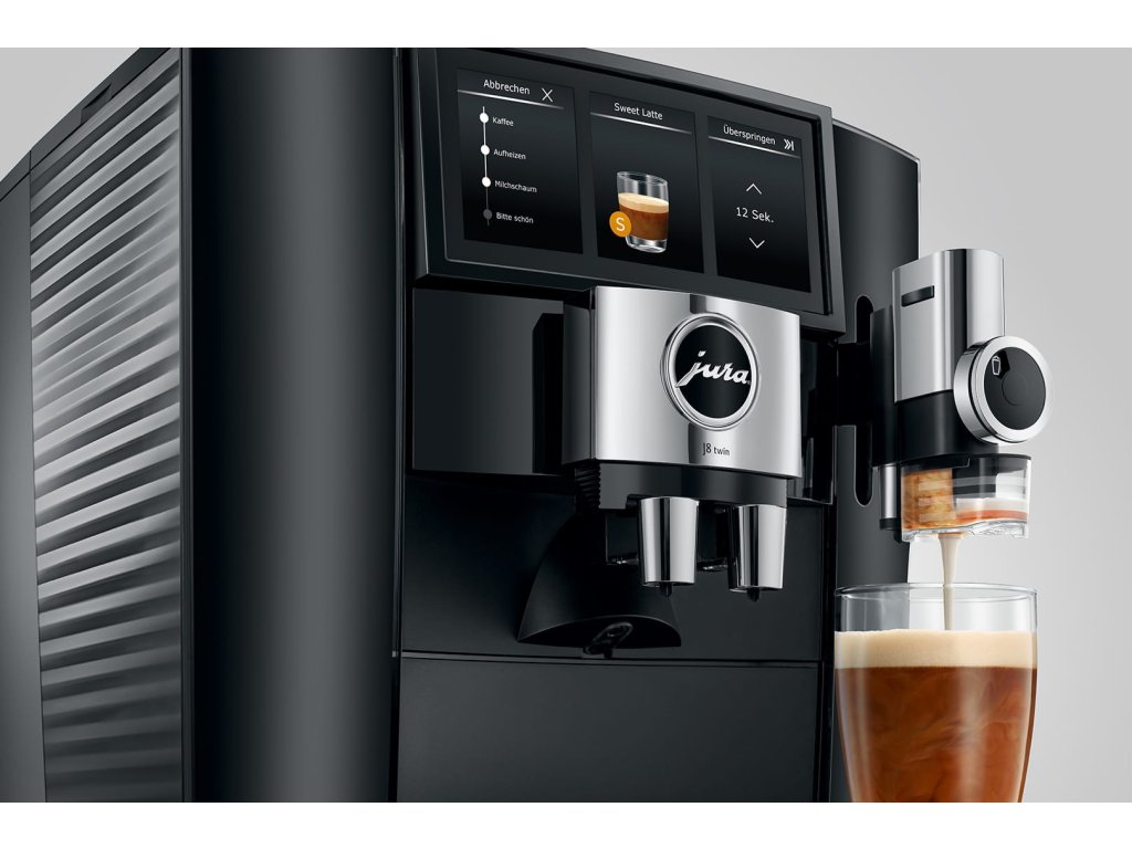 J8 twin připravuje 31 kávových specialit ve špičkové kvalitě. Oba vysoce výkonné mlýnky nabízejí největší možnou flexibilitu pro individuální přizpůsobení. Každá káva se tak připraví podle osobní chuti, vždy čerstvě namletá, s preferovaným druhem kávy, silná nebo jemná, s kofeinem nebo bez kofeinu. V kostce: kávovar nabízí výhody dvou automatických kávovarů v jediném kompaktním zařízení. Tento multitalent ovšem umí mnohem více. Na přání Vám dochutí a osladí mléčnou pěnu, čímž vám otevře zcela nové obzory požitku. Škála požitku splňuje každé přání a sahá od puristického espressa až po trendové sweet latte.