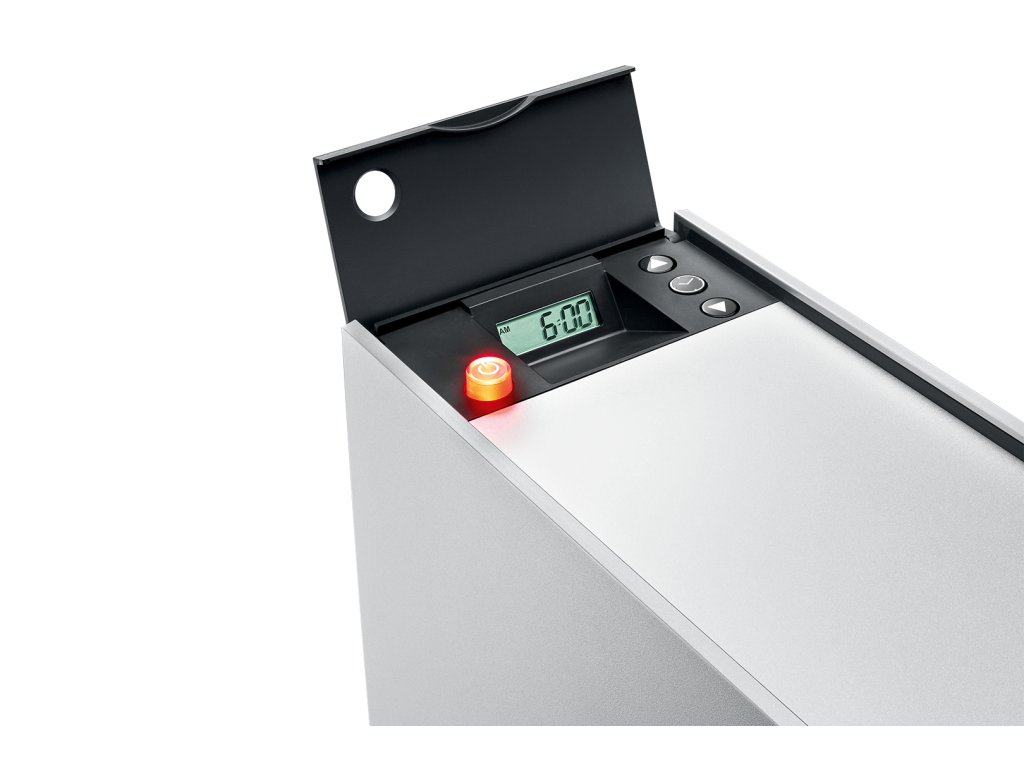 S programovatelným časem zapnutí a vypnutí má moderní ohřívač šálků dokonalou eko-inteligenci. Lze ho snadno přizpůsobit dle Vašich potřeb a nahřát tak šálky ve správný okamžik pro Vaši ranní kávu. Pokud není naprogramován čas vypnutí, inteligentní přístroj se sám automaticky vypne po 12 hodinách.